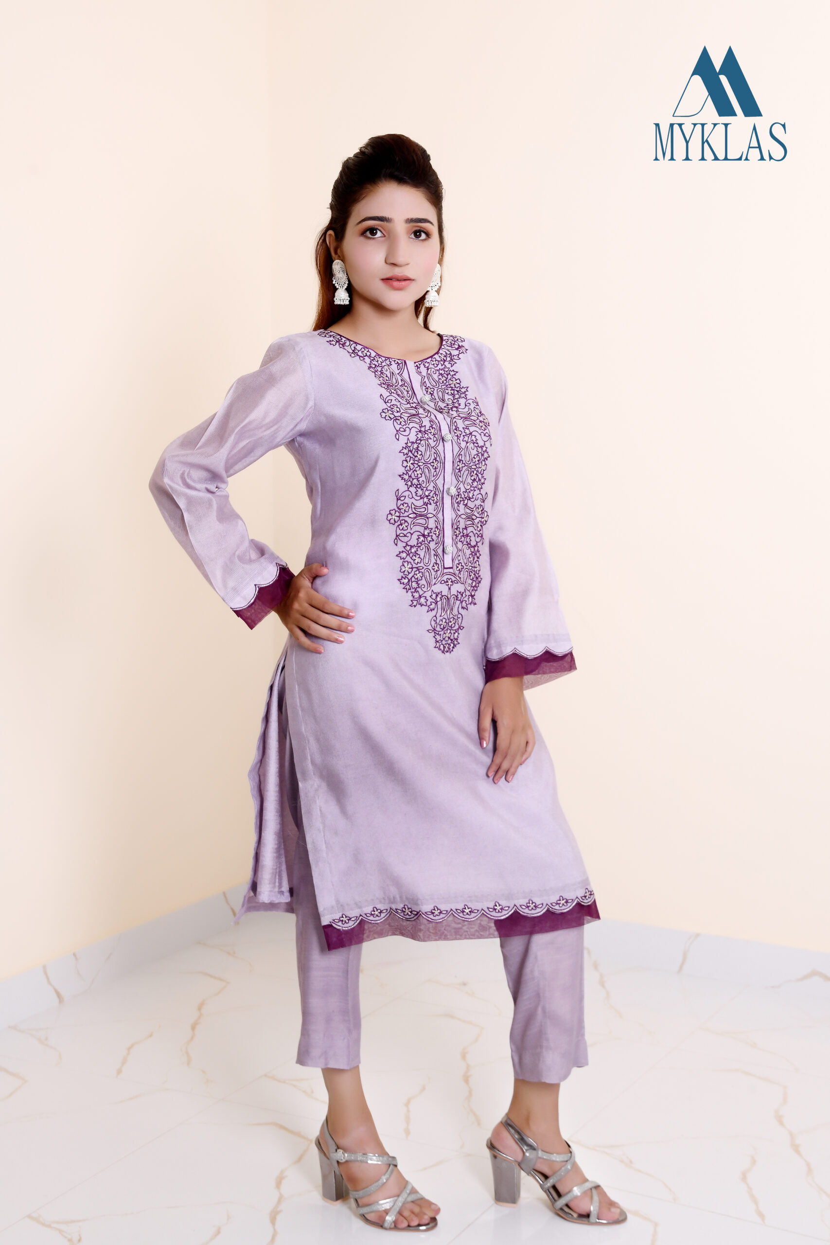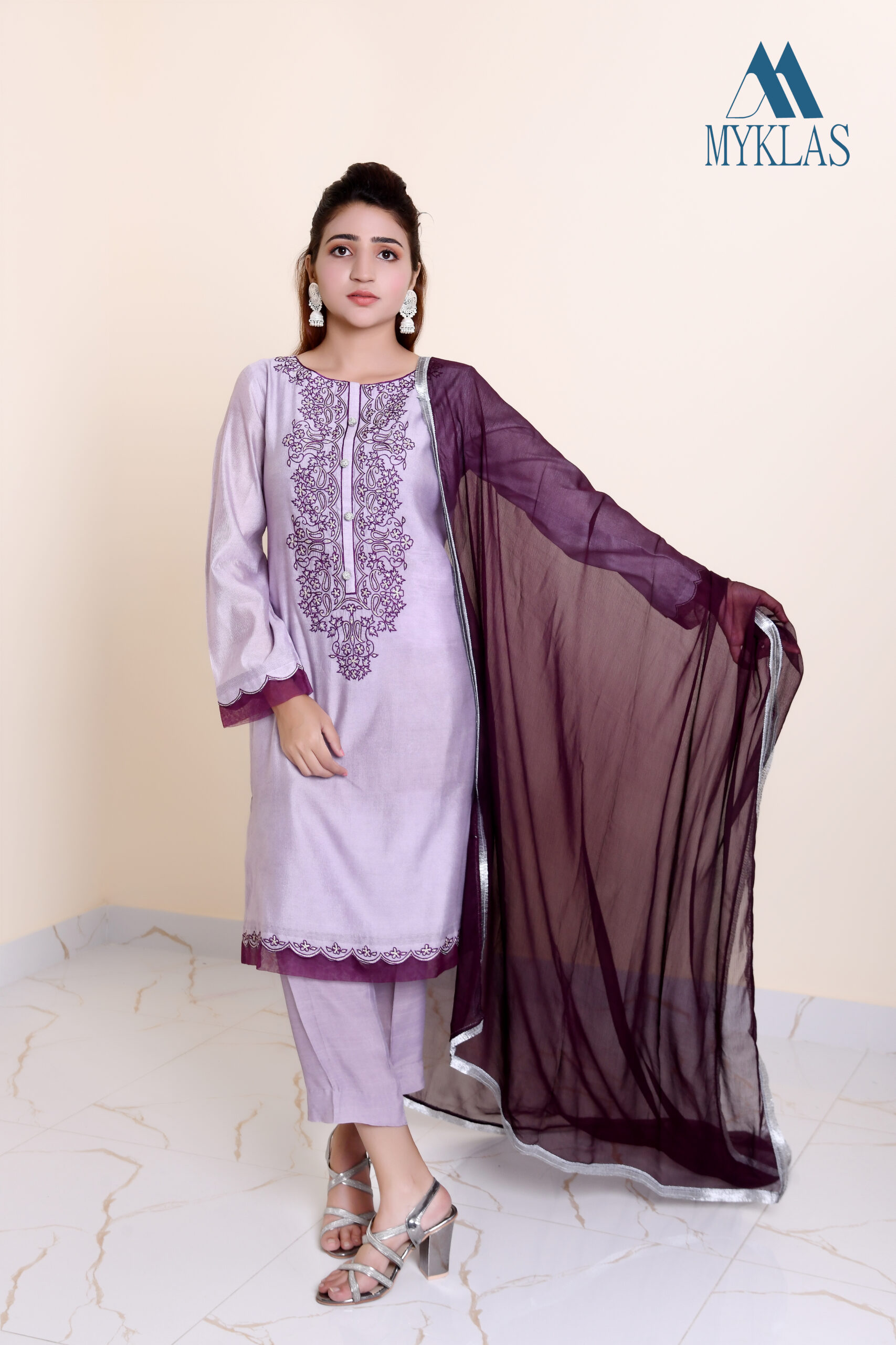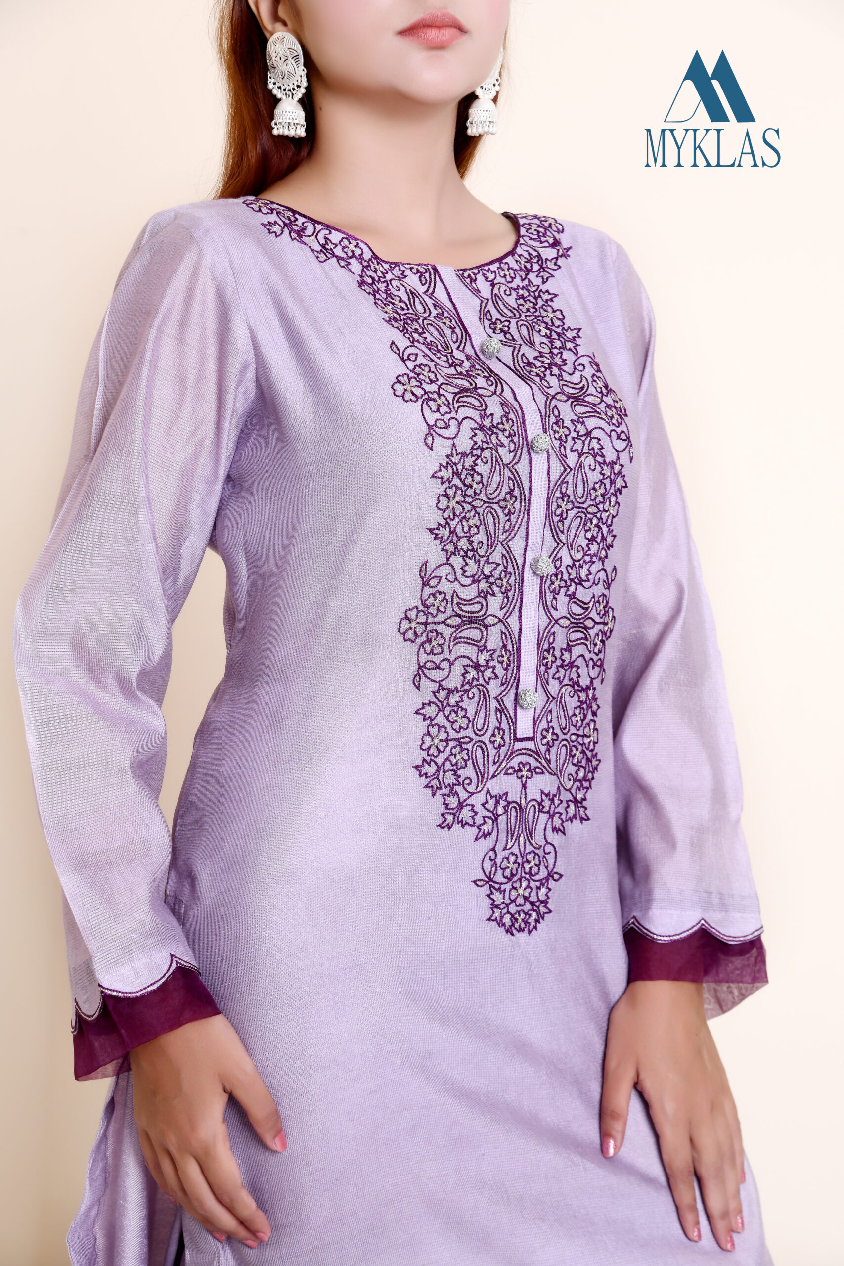 With elegant and effective mixture of colors (violet, purple and mauve) embroidery